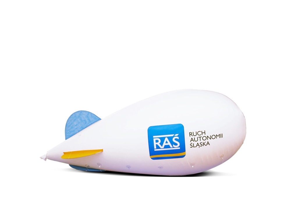 Airships are an interesting alternative to helium ballons. The original shape makes them the centre of attention. Graphic is tiled and placed on left and right side of the product. The aileron can be transfer printed in any colour.