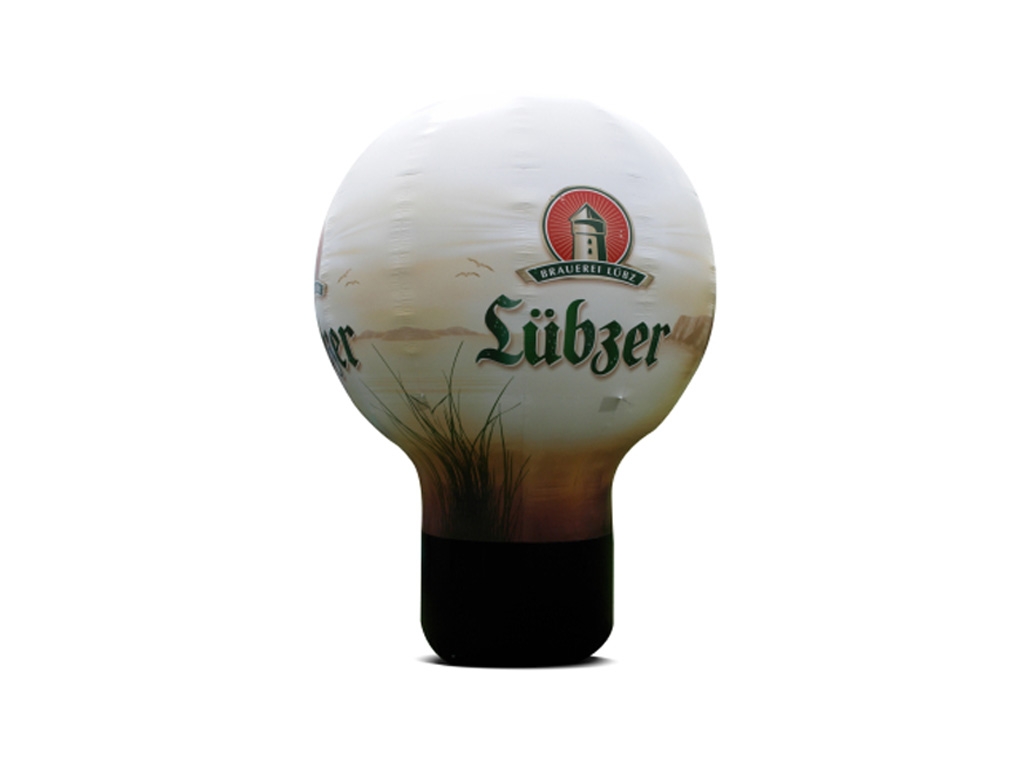 The line shape of the balloon looks like a light bulb. The Beta balloon is made from polyester fabric 300 g/m2. Inflatables can be made either from a coloured fabric or 100% overprinted. Graphics on balloons can be digitalny overprinted or via screen printing (Read more: Colours and Graphic).